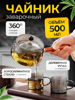 Чайник заварочный стеклянный с ситечком прозрачный 500 мл