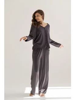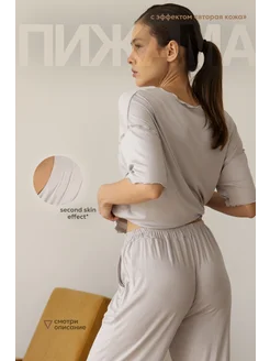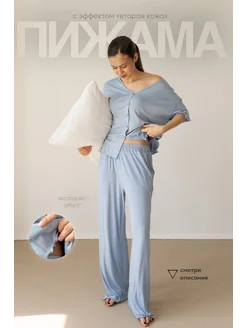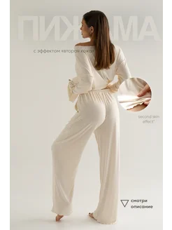 пижама с широкими штанами и длинным рукавом вискоза белая