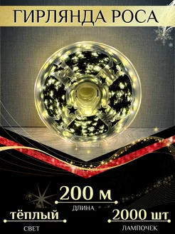 Гирлянда Роса 200 м 2000 Led на зеленом проводе 220V желтая
