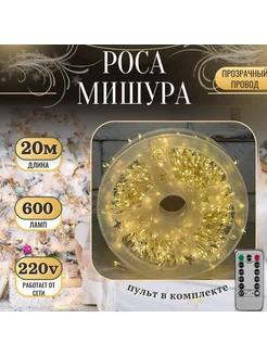 Гирлянда мишура роса 20 м 600 LED от сети 220V желтая