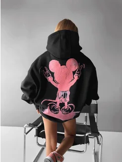 Зип худи оверсайз с капюшоном на молнии с принтом