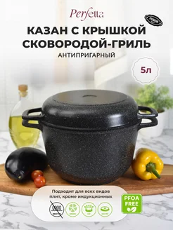 Казан 5 л с крышкой сковорода-гриль 24 см