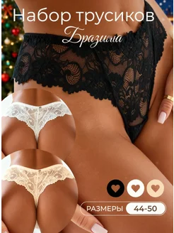 Трусы кружевные бразильяна набор 3 штуки