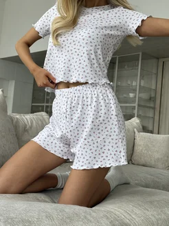 Пижама с шортами и футболкой хлопковая домашний костюм