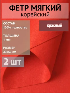 Мягкий фетр для рукоделия 1 мм красный 33х53см-2 шт