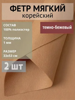 Мягкий фетр для рукоделия 1 мм темно-бежевый 33х53см-2 шт