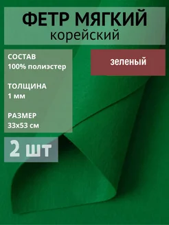 Мягкий фетр для рукоделия 1 мм зеленый 33х53см-2 шт