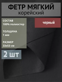 Мягкий корейский фетр для рукоделия 1 мм черный 33х53см-2 шт