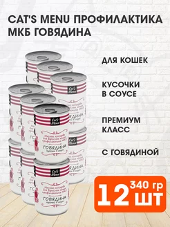 Корм для кошек влажный при мкб говядина 340 г 12 шт