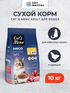 Сухой корм для взрослых кошек, с курицей - 10 кг