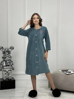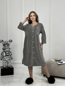 Домашний велюровый халат на пуговицах