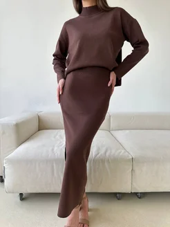 Костюм трикотажный с юбкой миди