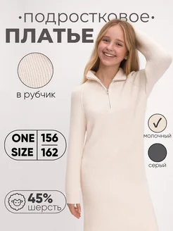Платье свитер вязаное для подростков теплое на молнии
