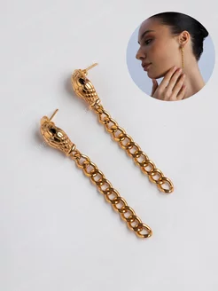 Серьги змейки с цепочкой премиум