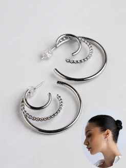 Серьги кольца обманки покрытие родием
