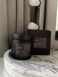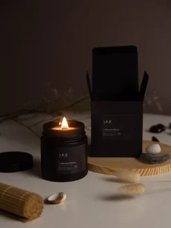 Свеча ароматическая с деревянным фитилем Табак и Ваниль