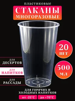 Стаканы пластиковые многоразовые 500 мл - 20 шт