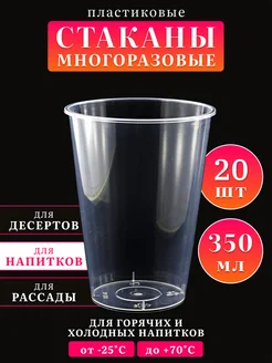 Стаканы пластиковые многоразовые 350 мл. - 20 шт