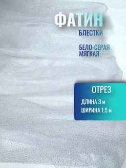 Ткань сетка бело-серая с блестками мягкая 300х150 см