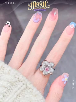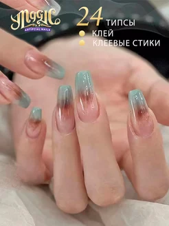 Накладные ногти с клеем и дизайном набор 24 штук