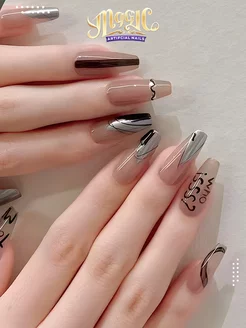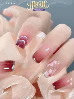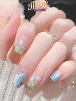 Накладные ногти с дизайном и клеем