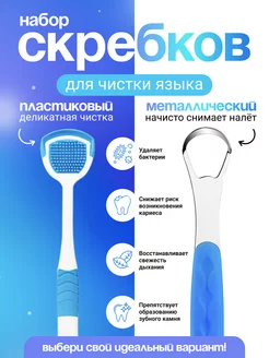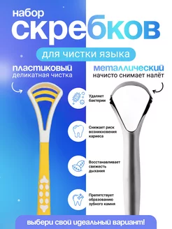 Скребок для языка взрослый металлический и пластиковый 2шт