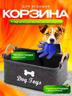 Корзина для игрушек собак и перчатка для вычесывания шерсти