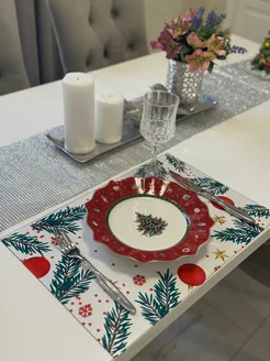 Салфетка новогодняя сервировочная на стол 1шт
