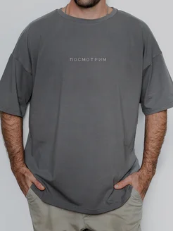 Футболка оверсайз с надписью "посмотрим"