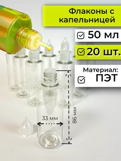 Бутылочка с пипеткой дозатором 50 мл 20 шт