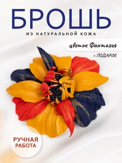 Брошь цветок "Фантазия" из натуральной кожи, ручной работы