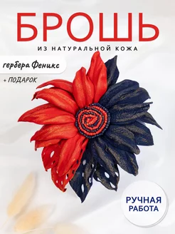 Брошь цветок "Феникс" из натуральной кожи, ручной работы