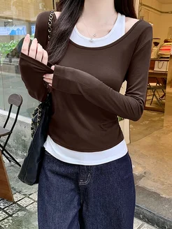 Лонгслив y2k двойной полупрозрачный с майкой