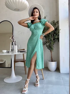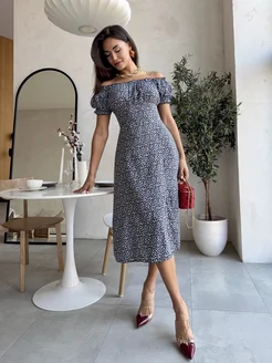 Летнее платье крестьянка миди