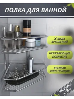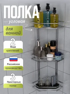 Полка для ванной угловая трехъярусная настенная, 1 шт