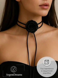 Чокер цветок украшение на шею роза черный
