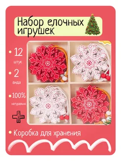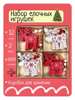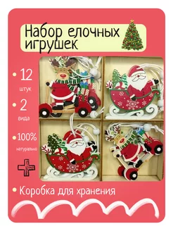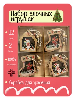 Набор елочных игрушек из дерева новый год 12 шт