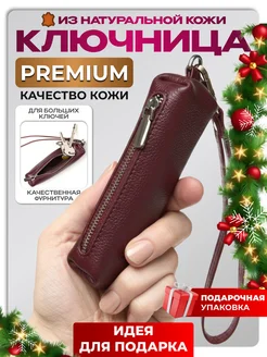 Ключница карманная кожаная бордовая