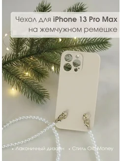 Чехол на iPhone 13 Pro Max новогодний с ремешком из бусин