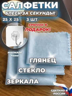 Салфетки из микрофибры для стекол, зеркал, очков 3 шт набор