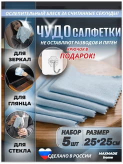 Салфетки из микрофибры для стекол, зеркал, очков 5 шт набор