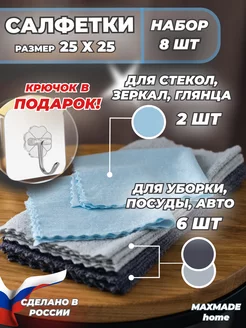 Салфетки из микрофибры набор 8 шт для стекол, зеркал, уборки
