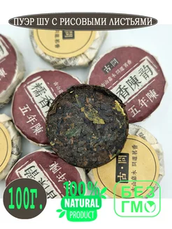 Чай Пуэр шу в форме таблетки с рисовыми листьями 100 гр