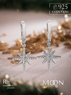 Серьги серебро 925 звезда