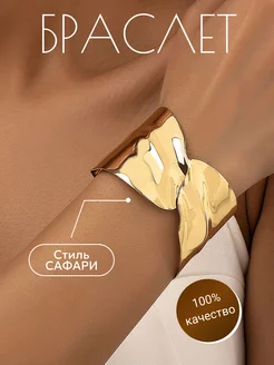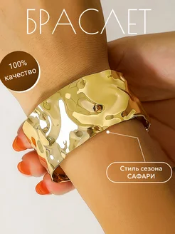Браслет женский на руку широкий бижутерия под золото сафари