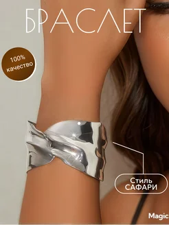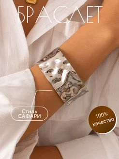 Браслет женский на руку широкий бижутерия под серебро сафари