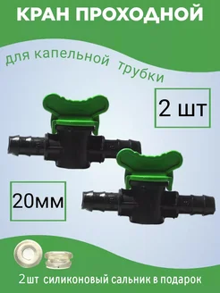 Кран проходной для капельной трубки 20 мм, 2 шт