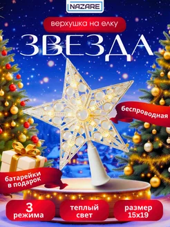 Звезда на елку светящаяся на батарейках новогодняя