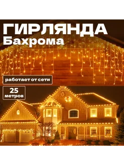 Гирлянда бахрома уличная 25 метров теплый желтый, 2000 LED