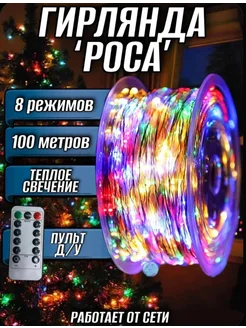 Светодиодная гирлянда нить-роса цветной 50 метров